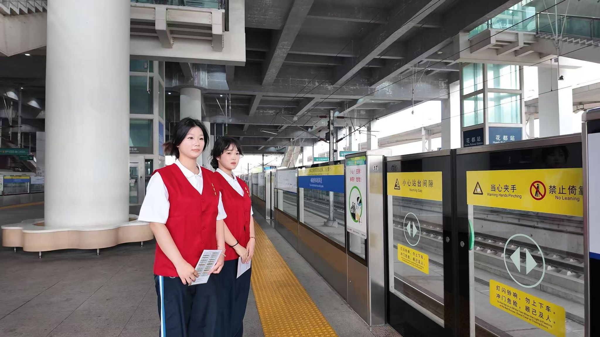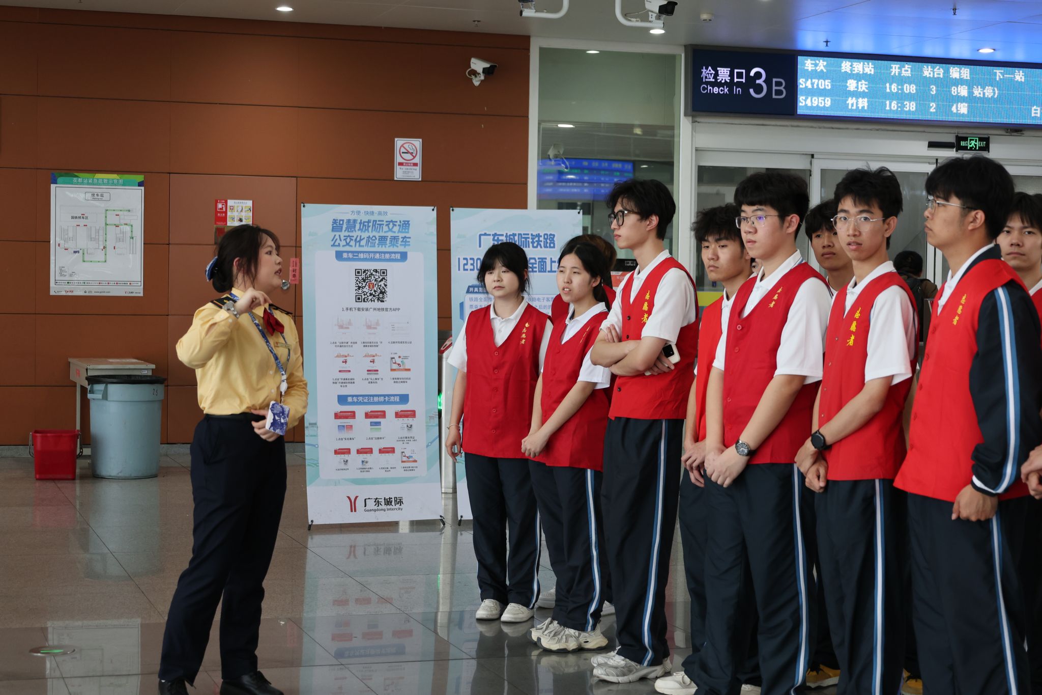 此次志愿服务紧扣花都站客运高峰需求,结合学子专业优势,提前开展专项培训与动员大会,涵盖车站服务礼仪、旅客引导规范、应急处置流程及城际铁路运营基础知识等内容,确保学子“上岗即胜任、服务有质量”。服务期间,身着志愿马甲的学子们分布在进站口、售票厅、候车室、检票口等关键岗位,有序开展各项服务工作。