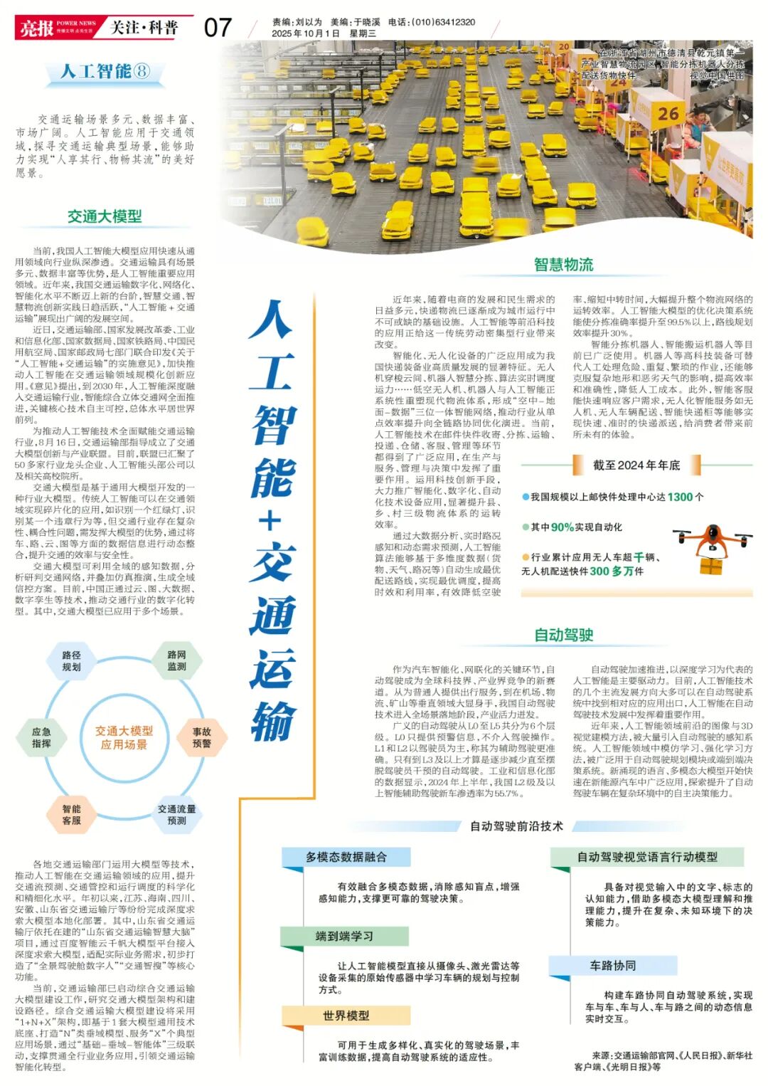 当前,我国人工智能大模型应用快速从通用领域向行业纵深渗透。交通运输具有场景多元、数据丰富等优势,是人工智能重要应用领域。近年来,我国交通运输数字化、网络化、智能化水平不断迈上新的台阶,智慧交通、智慧物流创新实践日趋活跃,“人工智能+交通运输”展现出广阔的发展空间。