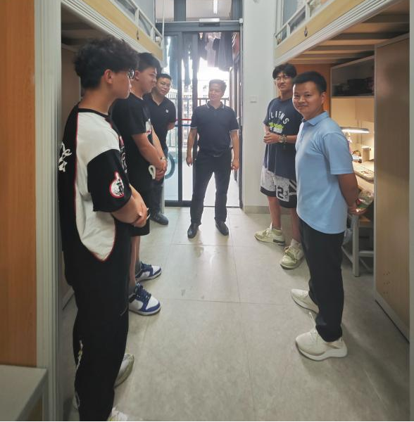 为进一步推进“一站式”学生社区建设,践行我校以学生为中心的管理理念,加强师生联系交流,营造舒适的学习生活氛围,10月22日下午,学校党委委员、校长助理孔练光、学生处副处长曾德钦、校社区管理中心主任谢家俊等一行深入走访学生宿舍,实地了解学生思想动态、学习生活状况。