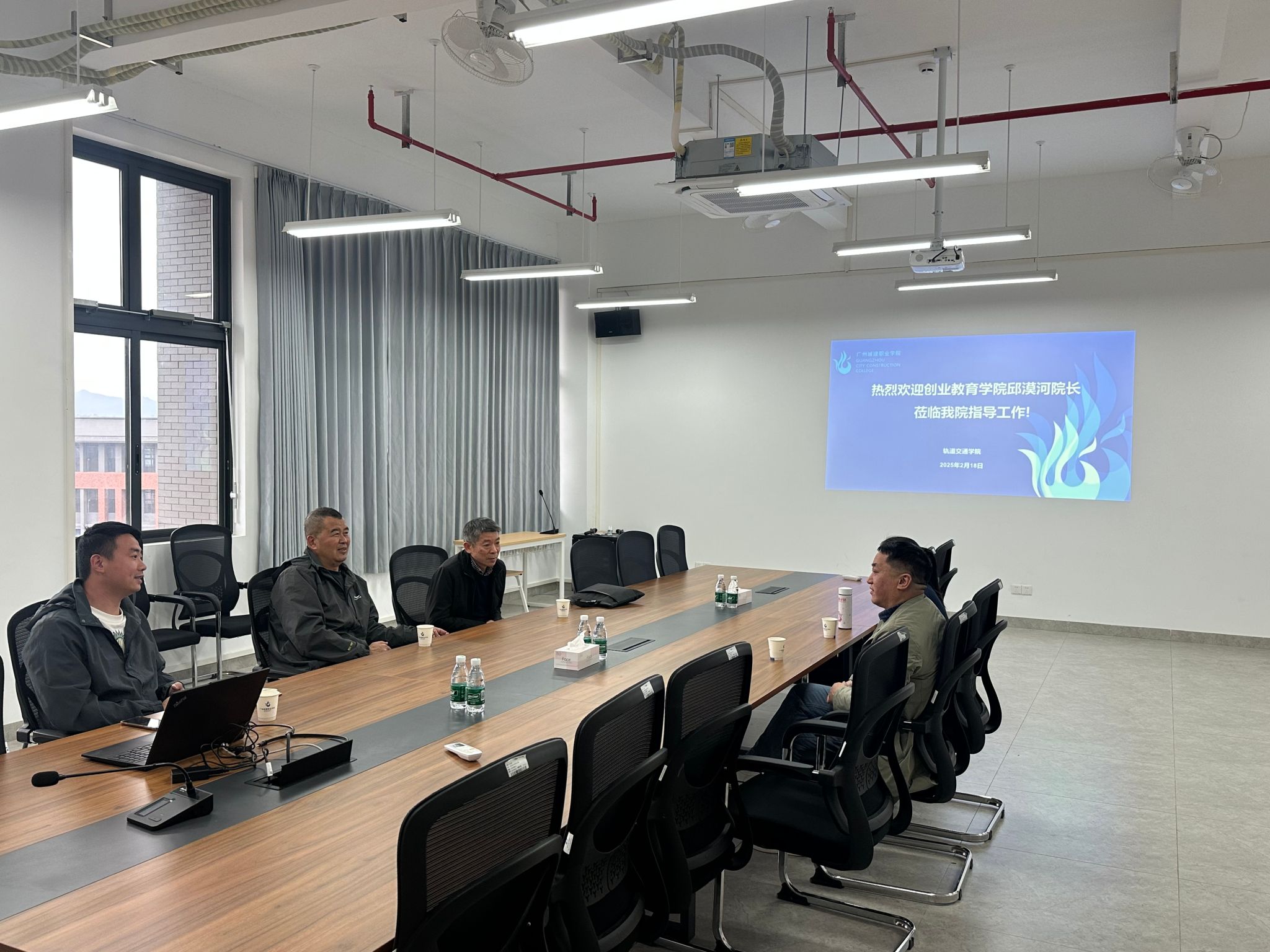 2月18日,开学伊始,学校创业教育学院邱漠河院长一行深入我院,就大学生创新创业教育、互联网+竞赛等相关工作进行座谈交流,学院党总支书记、院长罗意平,副院长李夏苗、乔琛参加了座谈会。会上,邱漠河详细介绍了当前大学生创新创业教育的形势和任务,指出了创新创业教育在培养新时代人才中的重要作用,罗意平就太阳成集团122ccvip在创新创业教育方面的工作思路进行了分享,希望结合专业建设在轨道交通领域深入开展创新创业教育和竞赛工作。