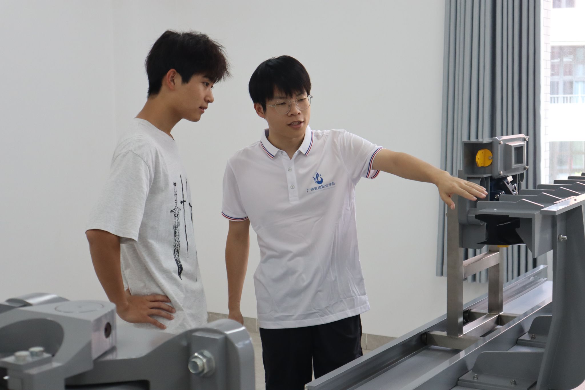 着装需符合实训场景:穿防滑工服、劳保鞋(避免穿凉鞋、拖鞋、高跟鞋,防止滑倒或被设备划伤),长发需盘起并戴工作帽(避免卷入运动部件),不穿宽松衣物(如肥大袖口、裙摆,防止勾挂设备),不佩戴首饰(项链、手链、戒指等可能接触电路或被机械卡夹)。
