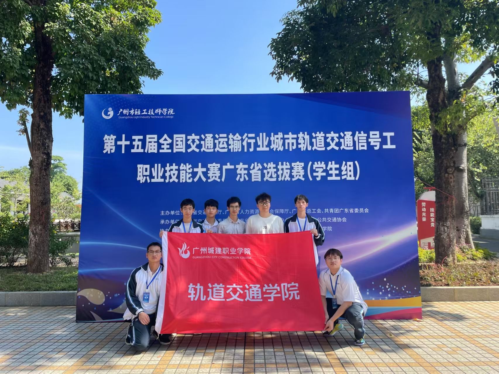 11月10日, 由广东省交通运输厅、广东省人力资源和社会保障厅、广东省总工会、共青团广东省委员会主办的第十五届全国交通运输行业城市轨道交通信号工(学生组)职业技能大赛广东省选拔赛在广州市轻工技师学院隆重开赛,本次赛项来自全省轨道交通企业、职业院校的参赛选手、领队、指导老师共70余人参与了此项赛事,我院段斌宏、范俊诚老师带领城市轨道交通通信信号技术专业5位同学代表学校参加了此次比赛。