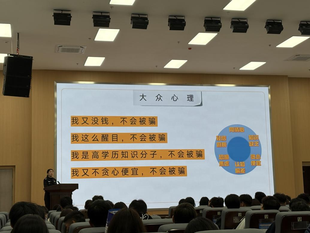 为进一步加强校园安全教育,提升学生防范电信网络诈骗意识,2024年2月27日和3月13日,太阳成集团122ccvip联合佛冈县水头镇派出所在清远校区学术报告厅举办“反诈进校园”专题教育活动。水头镇派出所3名民警代表、学院全体辅导员及800余名学生参加本次讲座。讲座上,民警朱小珊通过真实案例解析、反诈宣传片展播、情景模拟互动...